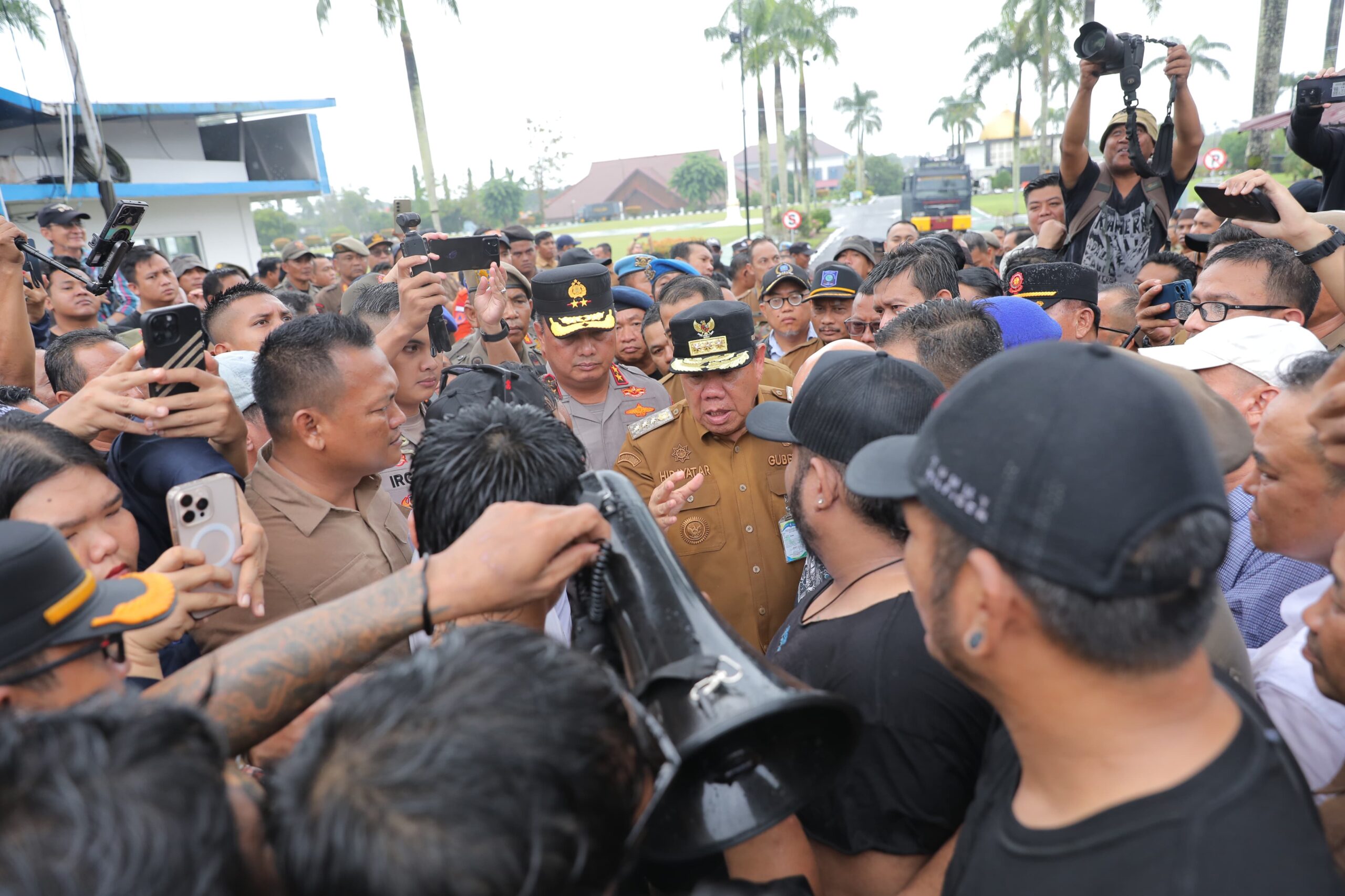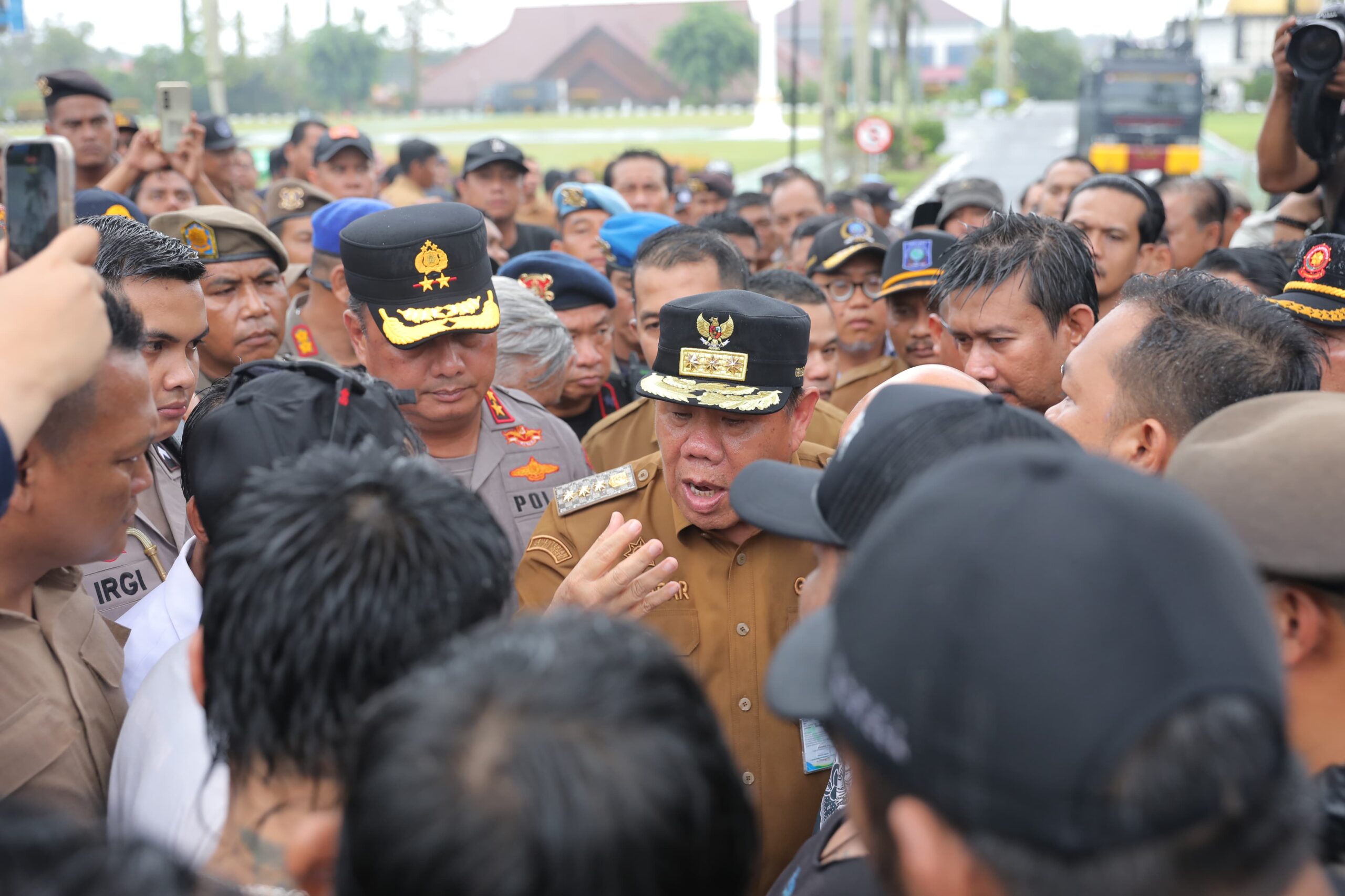 “Ke depan mari kita duduk bersama, berdialog tanpa harus turun ke jalan. Kita cinta damai, cinta rakyat. Setiap persoalan pasti ada jalan keluarnya,” ujar Gubernur Hidayat Arsani.