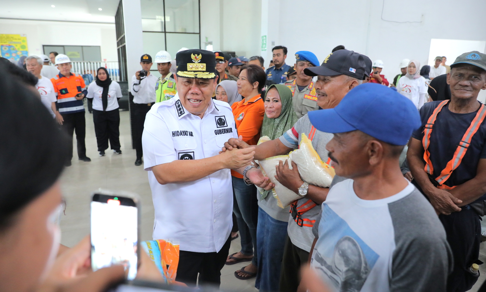 Selain membagikan sembako, Gubernur Hidayat juga meninjau secara langsung area pelabuhan sekaligus mendengarkan keluh kesah para pekerja terkait kondisi lapangan yang perlu mendapatkan perhatian.