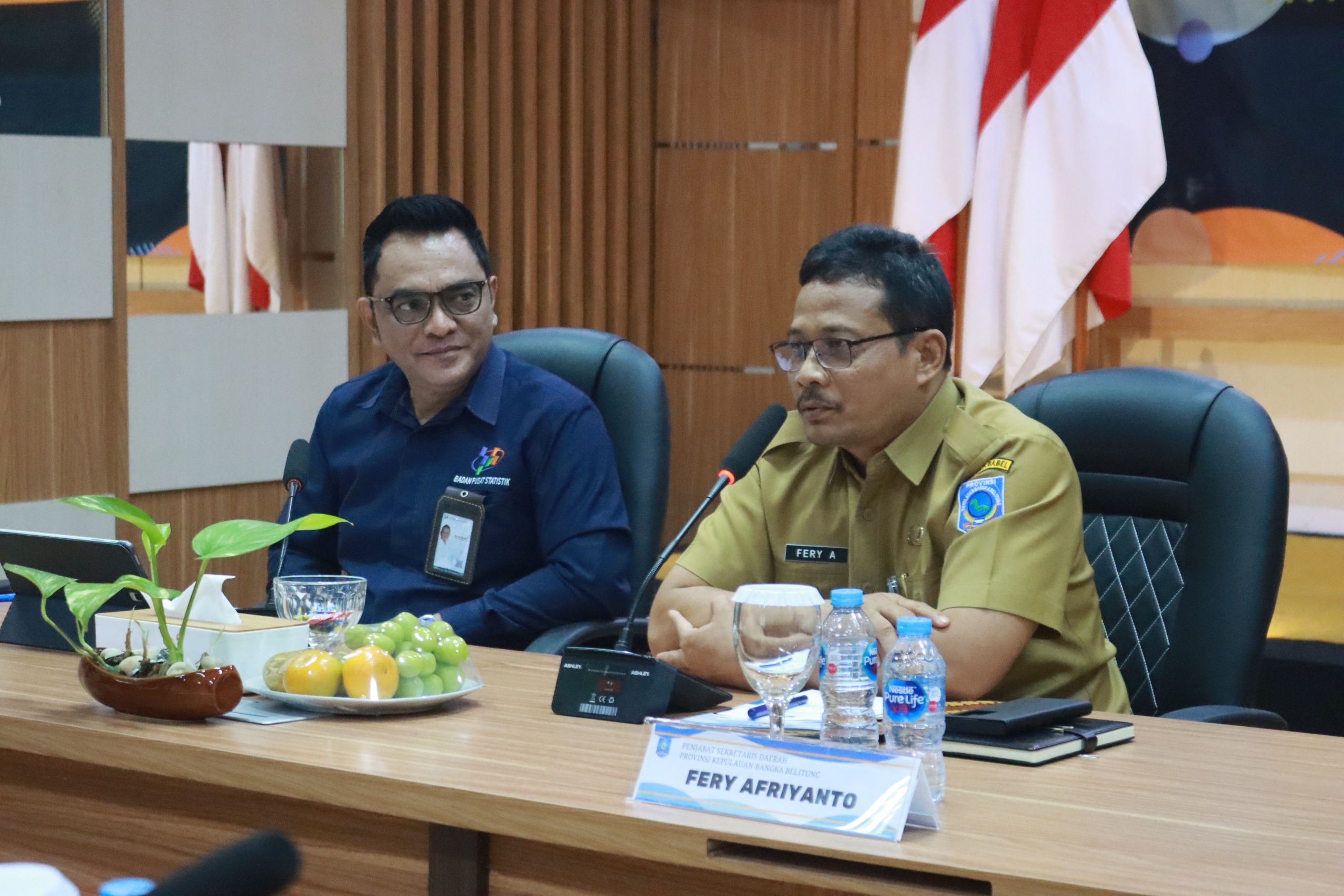 Penjabat Sekretaris Daerah (Pj Sekda) Provinsi Kepulauan Bangka Belitung (Babel), Fery Afrianto menghadiri Press Release Berita Resmi Statistik Provinsi Babel di Ruang Aula BPS. Pj Sekda Fery mengapresiasi BPS yang selalu konsisten dan komitmen dalam menyampaikan berita resmi statistik (BRS) setiap bulan