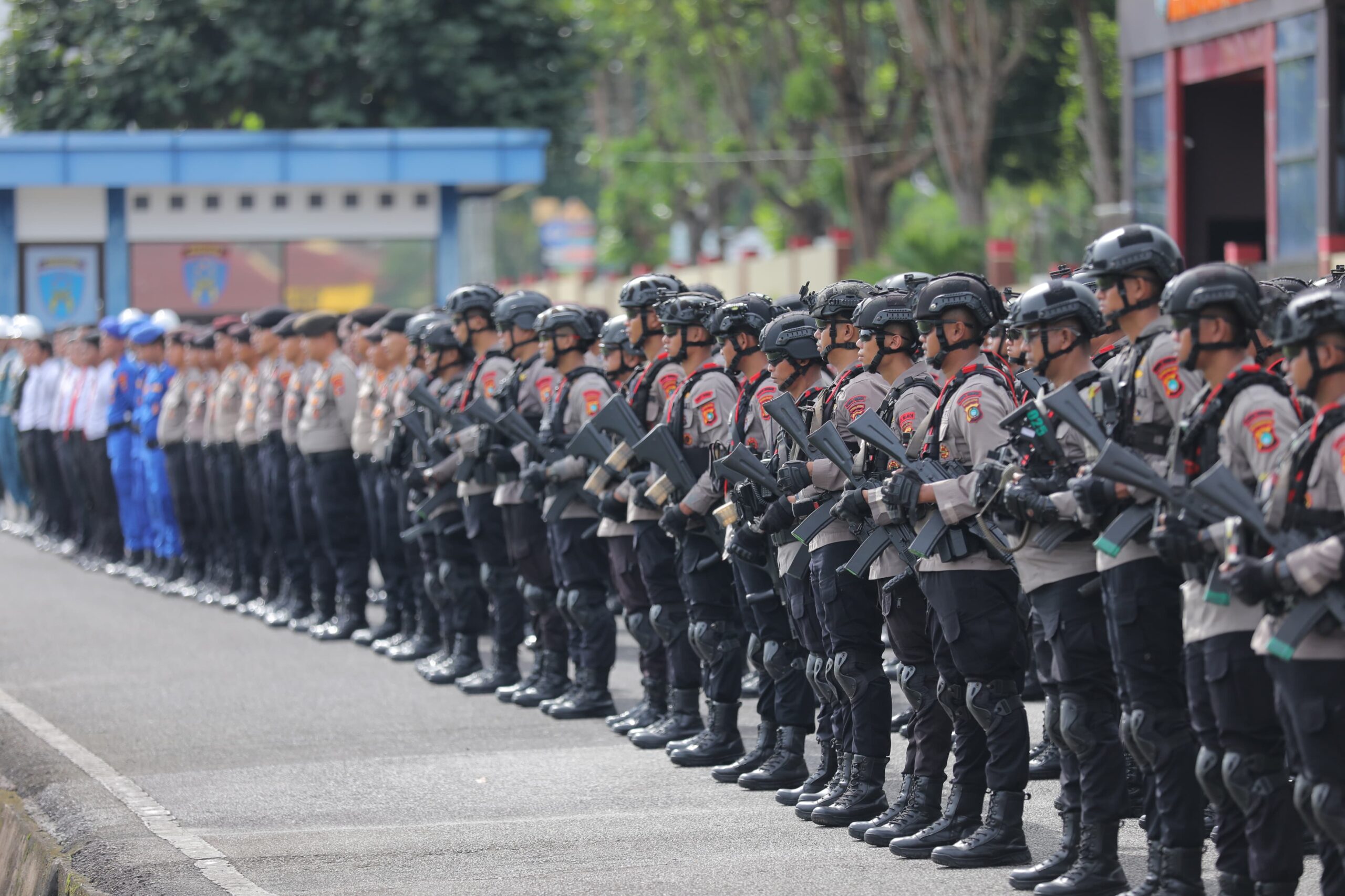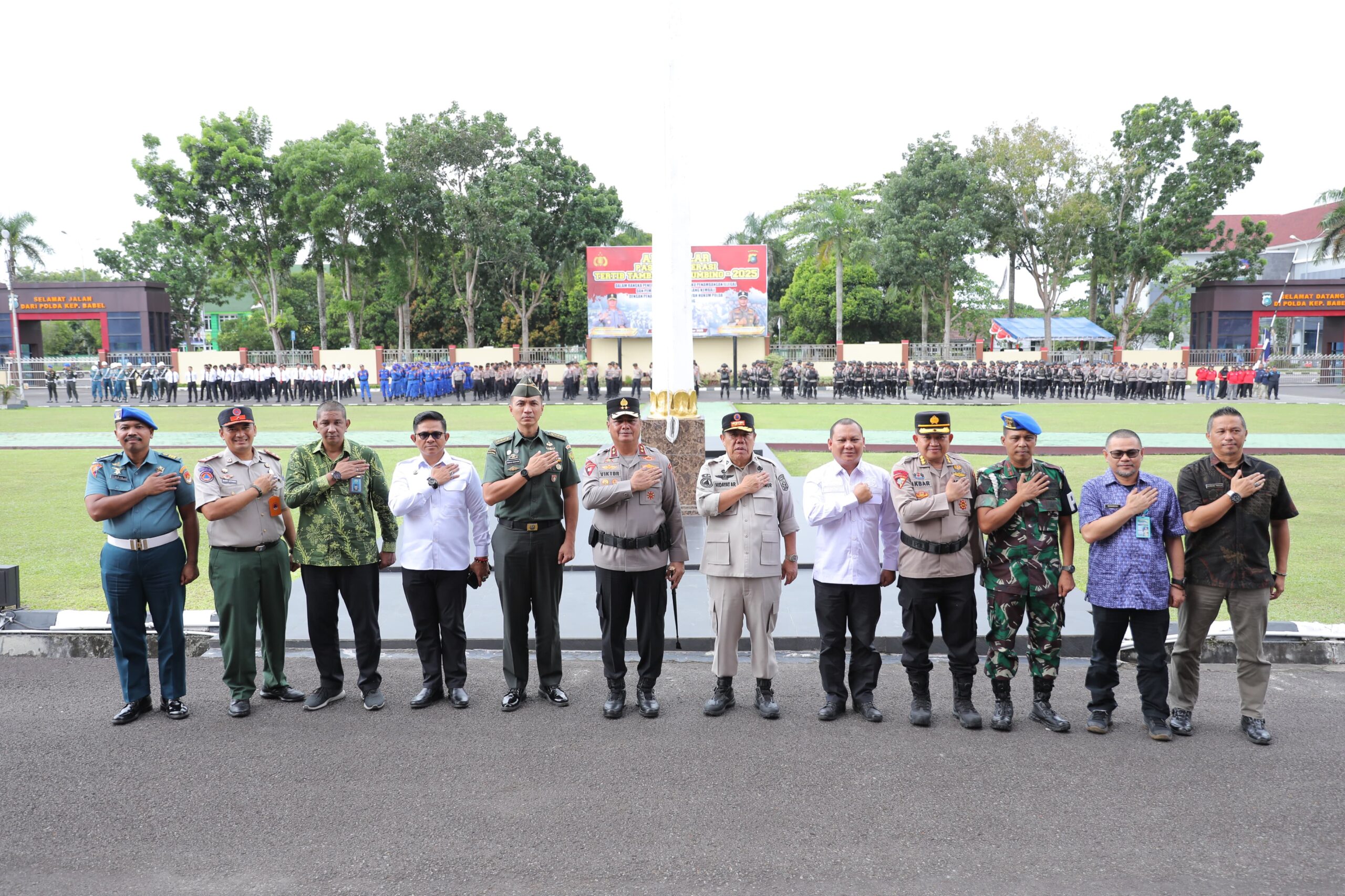 JENDELABABEL.COM, PANGKALPINANG — Gubernur Kepulauan Bangka Belitung (Babel) Hidayat Arsani bersama Forkopimda Babel secara tertib mengikuti pelaksanaan Apel Gelar Pasukan Operasi Tertib Tambang Menumbing yang dilaksanakan di Halaman Mapolda Babel pada Kamis,(11/12/2025).