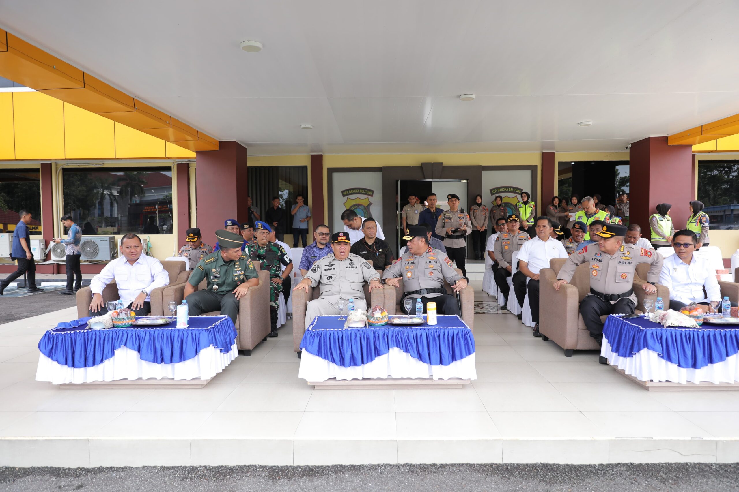 JENDELABABEL.COM, PANGKALPINANG — Gubernur Kepulauan Bangka Belitung (Babel) Hidayat Arsani bersama Forkopimda Babel secara tertib mengikuti pelaksanaan Apel Gelar Pasukan Operasi Tertib Tambang Menumbing yang dilaksanakan di Halaman Mapolda Babel pada Kamis,(11/12/2025).