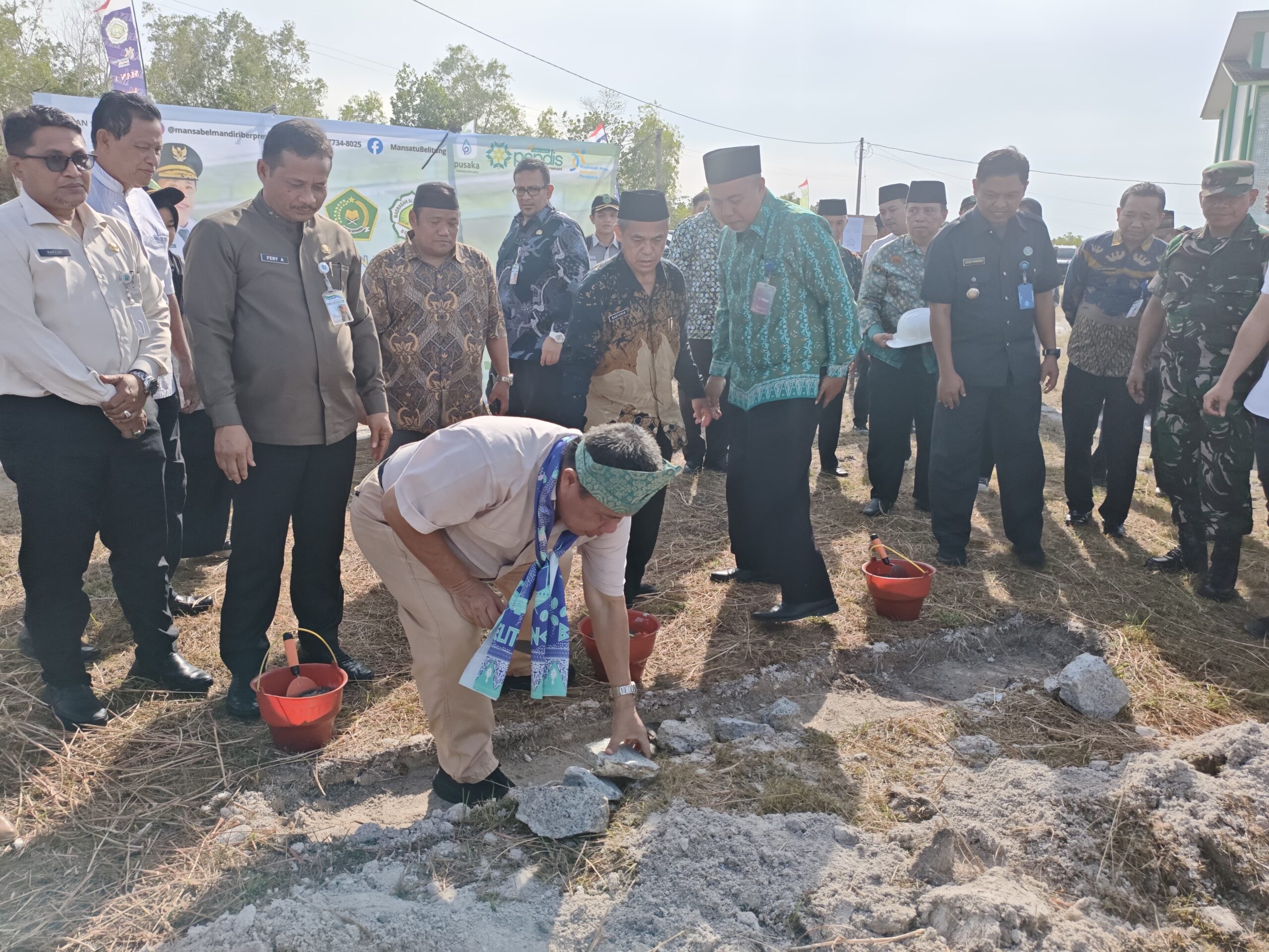 JENDELABABEL.COM, BELITUNG — Komitmen Pemerintah Provinsi Kepulauan Bangka Belitung (Pemprov Babel) dalam membangun generasi beriman, berkarakter, dan berdaya saing kembali ditegaskan. Gubernur Kepulauan Bangka Belitung Hidayat Arsani secara langsung melakukan peletakan batu pertama pembangunan Sarana Ibadah Madrasah Aliyah Negeri (MAN) 1 Belitung, Jumat (6/2/2026).