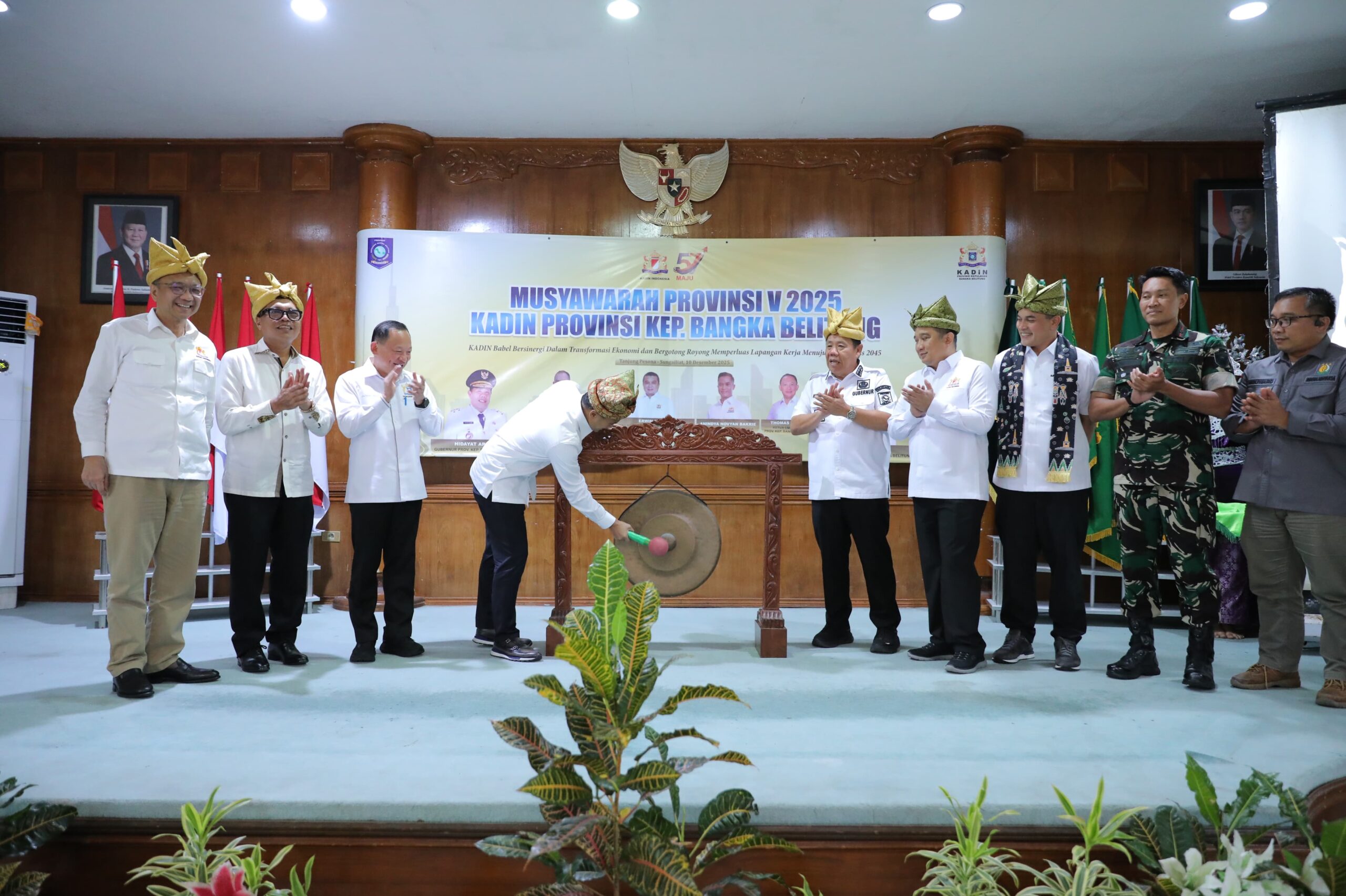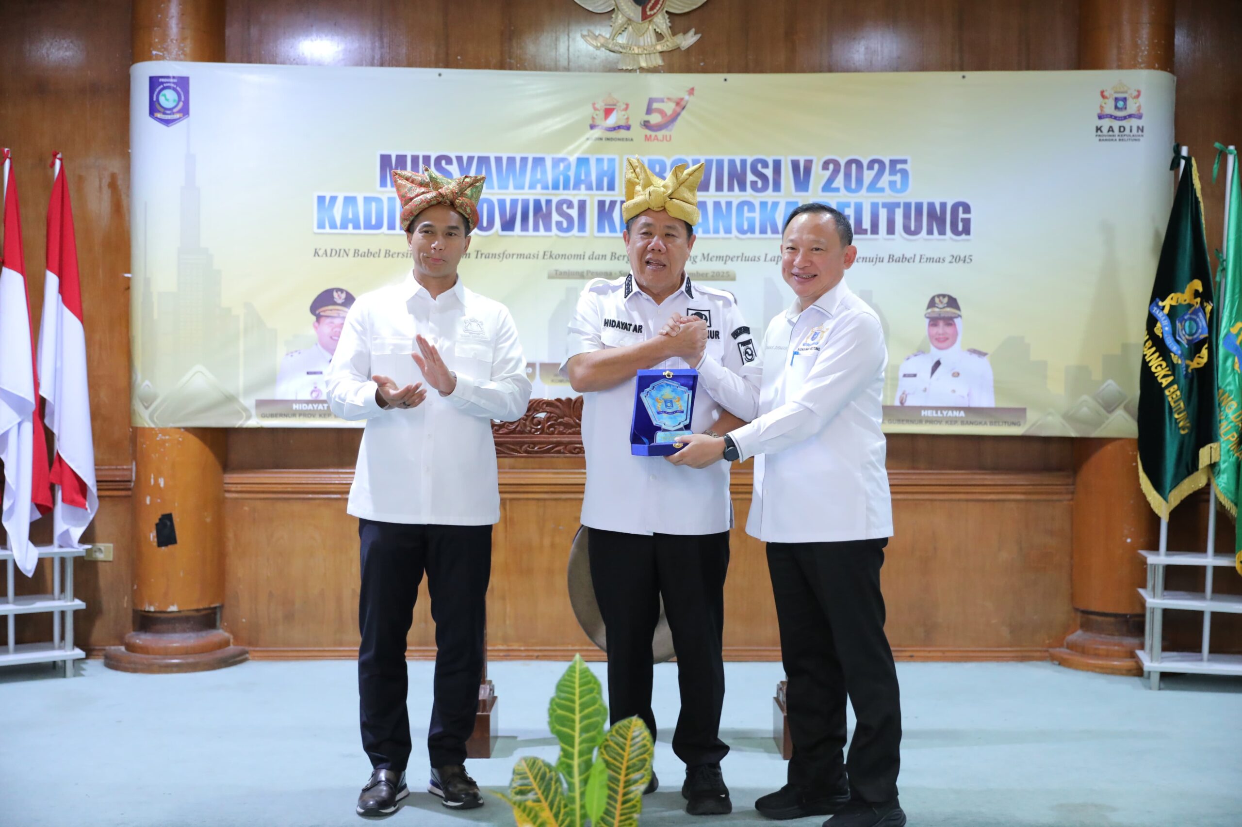 JENDELABABEL.COM, SUNGAILIAT — Gubernur Kepulauan Bangka Belitung (Babel), Hidayat Arsani berkesempatan hadir di pembukaan Musyawarah Provinsi (Musprov) ke-V Pengurus Daerah Kamar Dagang dan Industri Indonesia (Kadin) Babel tahun 2025.