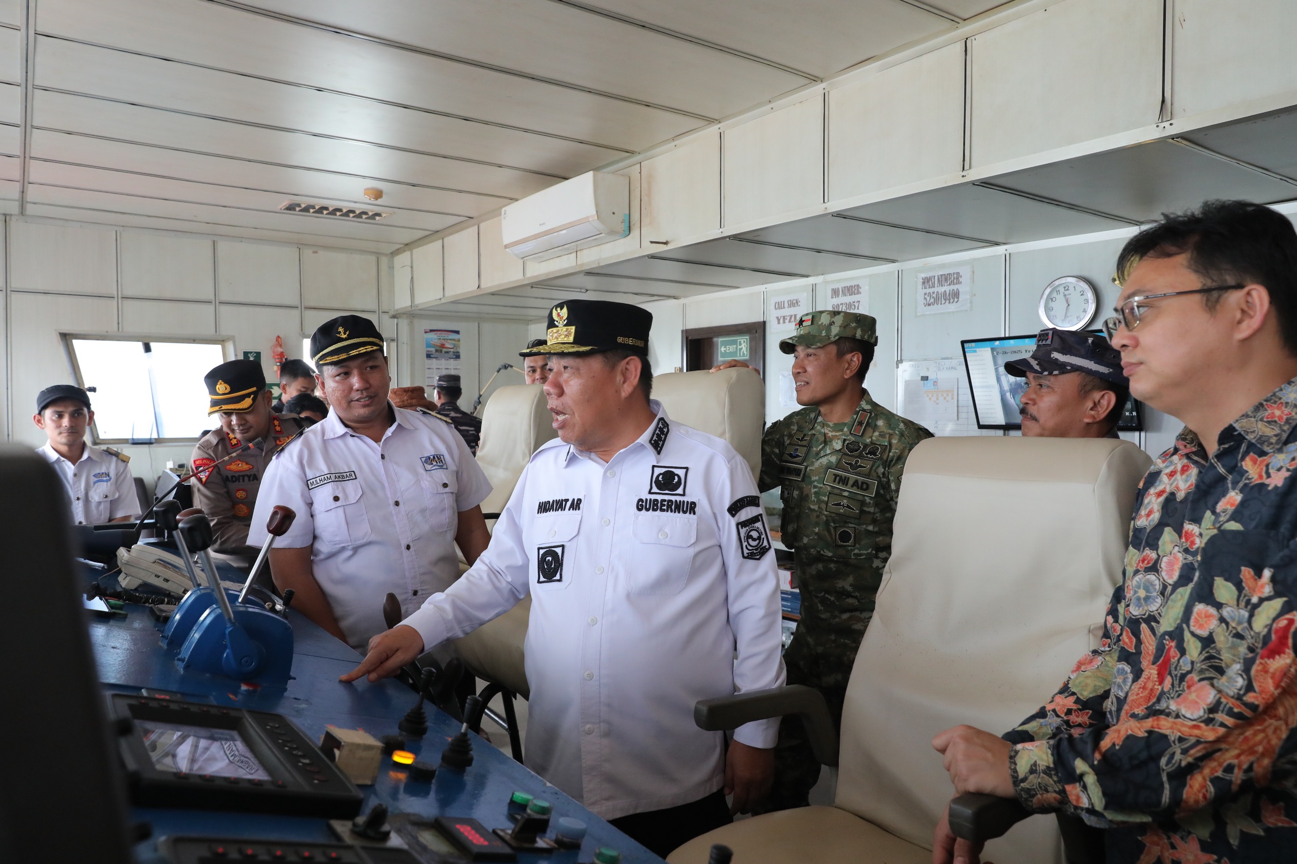 Pada kesempatan itu, Gubernur bersama Forkopimda juga menyempatkan diri naik ke atas KMP Mutiara Pertiwi III yang akan bertolak menuju Pelabuhan Api Api. Satu per satu area kapal ditinjau, mulai dari dek penumpang hingga ruang kemudi, guna memastikan pelayanan kepada masyarakat saat arus libur Natal dan Tahun Baru berjalan aman dan lancar.