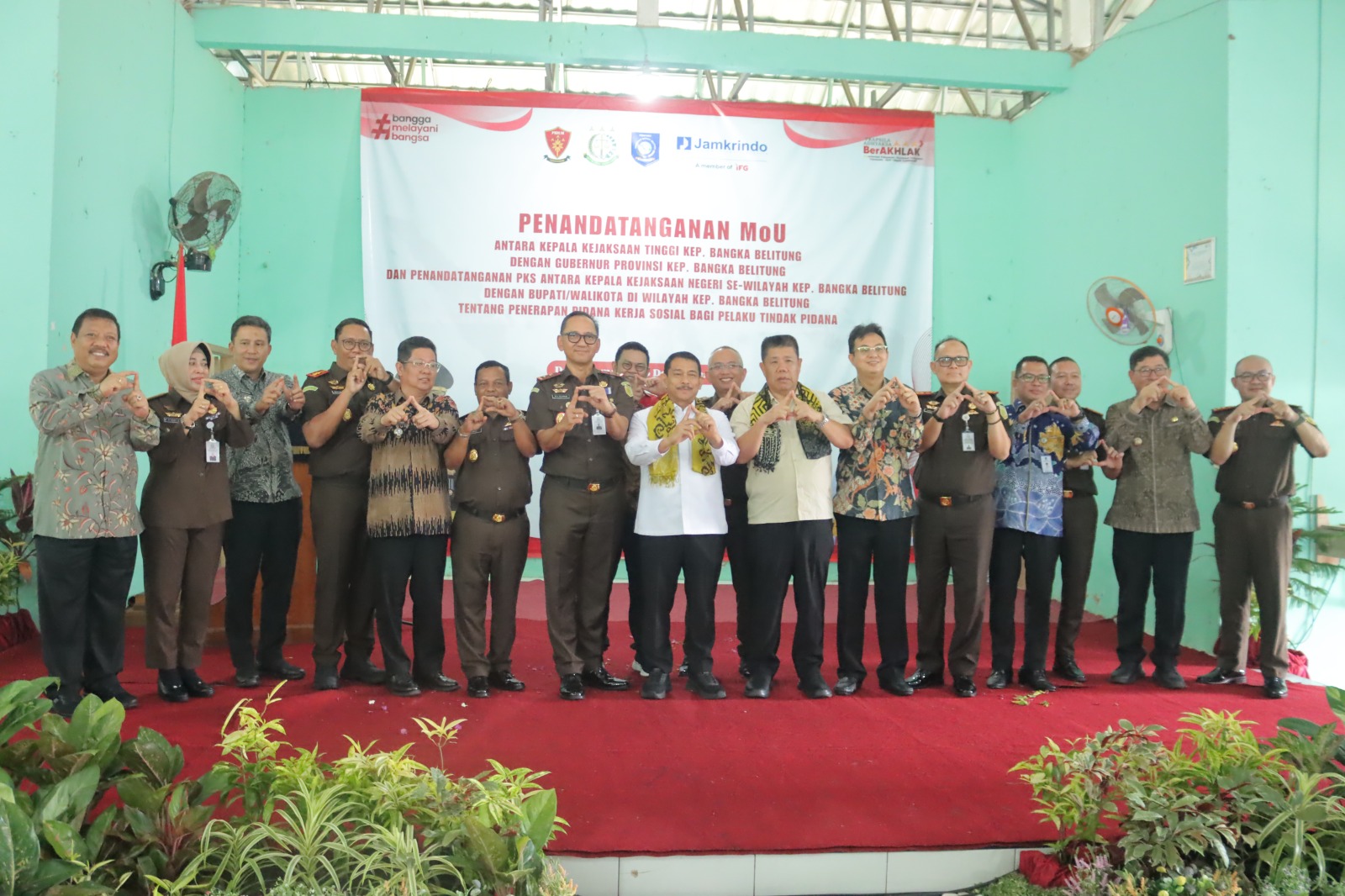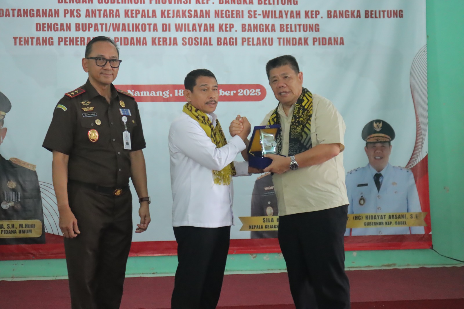 JENDELABABEL.COM, NAMANG  BANGKA TENGAH  —  Pemerintah Provinsi Kepulauan Bangka Belitung (Pemprov Babel) Kamis (18/12/2025). kembali menjalin kerja sama dengan Kejaksaan Tinggi (Kejati) Babel melalui Penandatanganan Nota Kesepahaman dan Kesepakatan bersama dalam rangka mewujudkan sinergitas membangun kerja sama dan koordinasi yang efektif serta optimalisasi penanganan terhadap pelaku tindak pidana sosial di Babel.