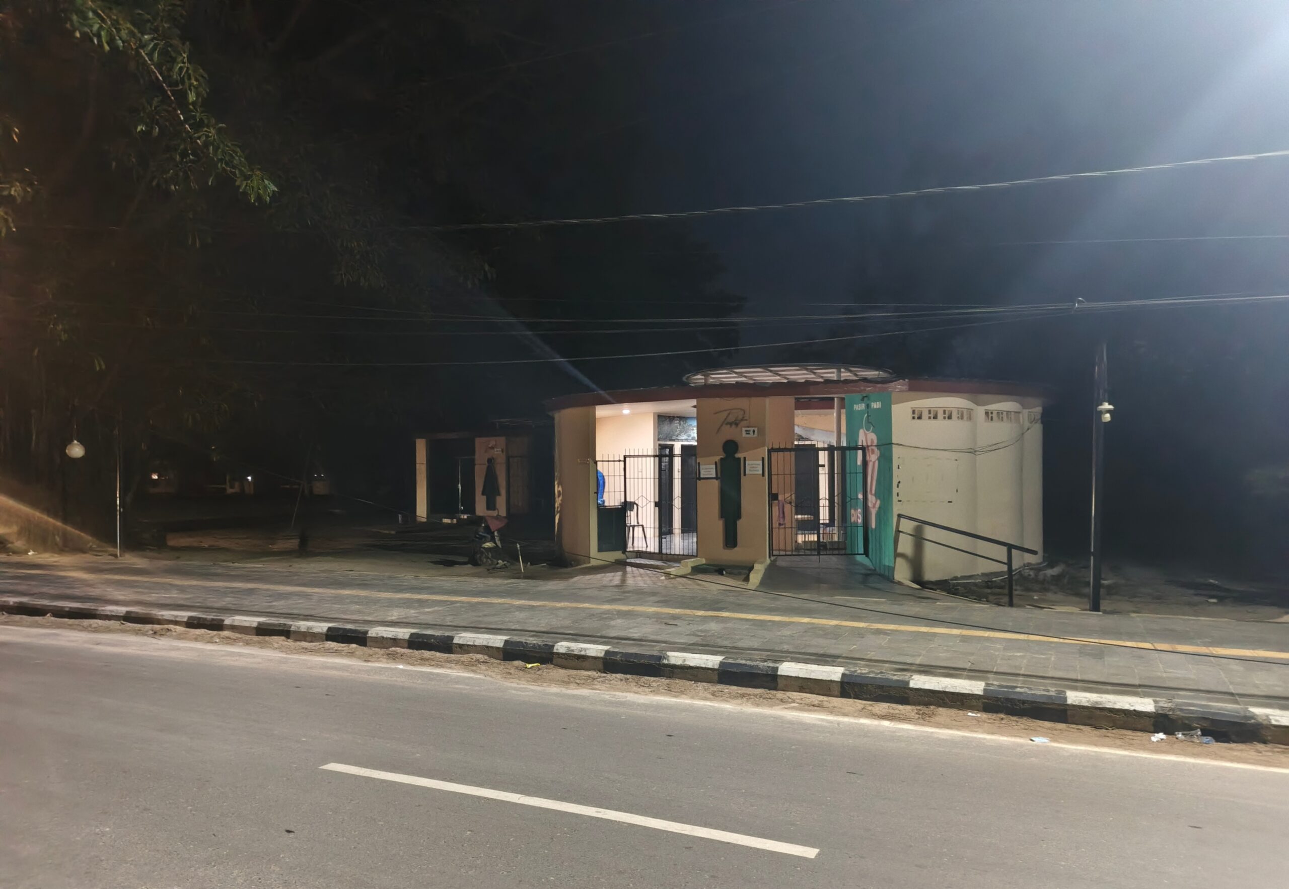 Dilokasi nampak gelap gulita hanya di terangi alakadarnya lampung jalan. Selain itu, kondisi toilet yang terkunci rapat seakan fasilitas yang dibangun mengunakan uang pajak rakyat kota pangkalpinang tersebut tidak berlaku untuk masyarakat. Satu diiantarnya tidak terlihat tanda-tanda kehidupan, tampa penerangan menambah kesan angker dan kurangnya sentuhan perawatan.