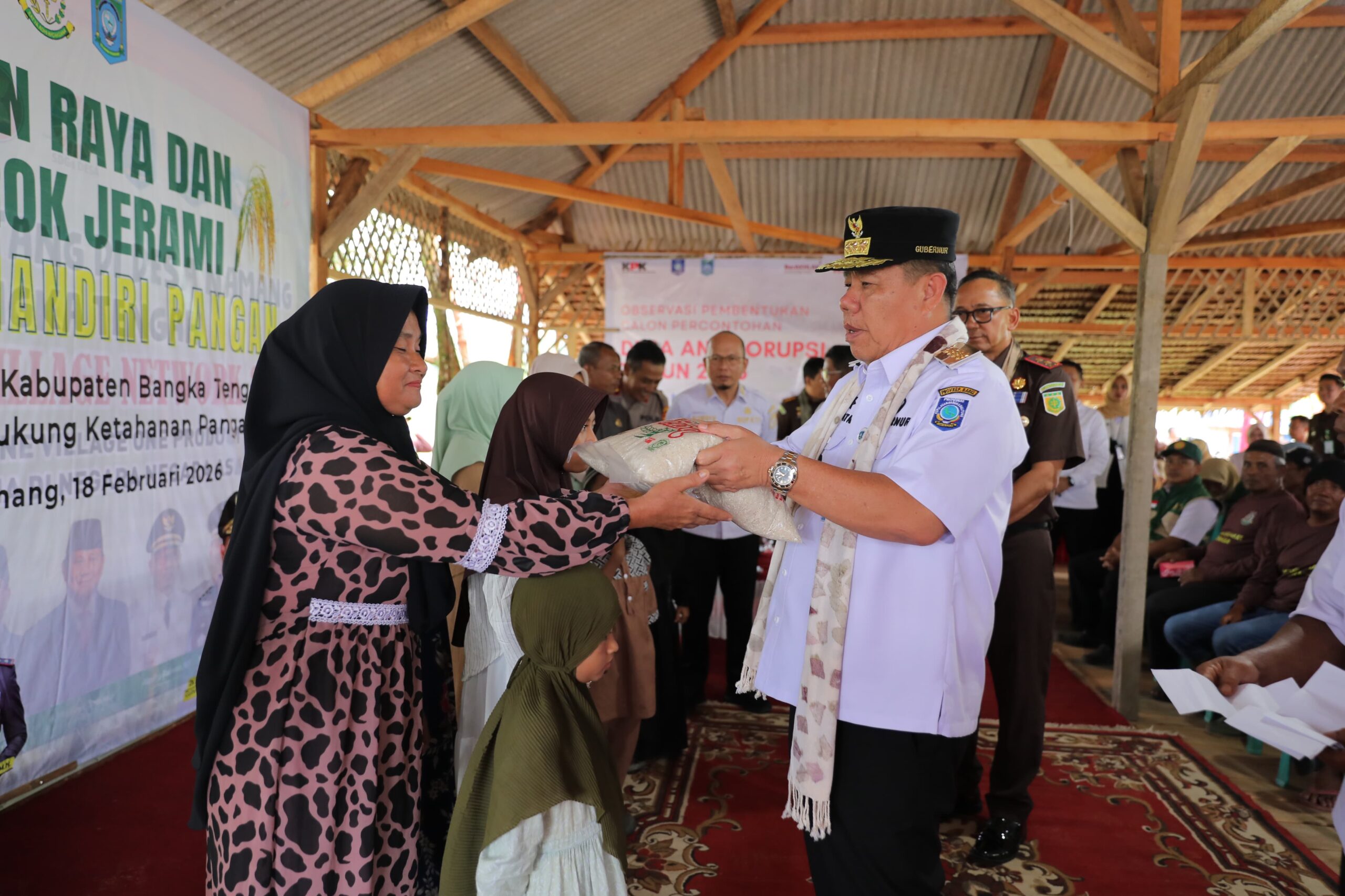 JENDELABABEL.COM, BANGKA TENGAH — Komitmen memperkuat ketahanan pangan daerah kembali ditegaskan Gubernur Kepulauan Bangka Belitung (Babel), Hidayat Arsani, saat menghadiri Panen Raya dan Murok Jerami Program Jaksa Mandiri Pangan yang diinisiasi Kejaksaan Tinggi Bangka Belitung di Saung Desa Namang, Rabu (18/2/2026).