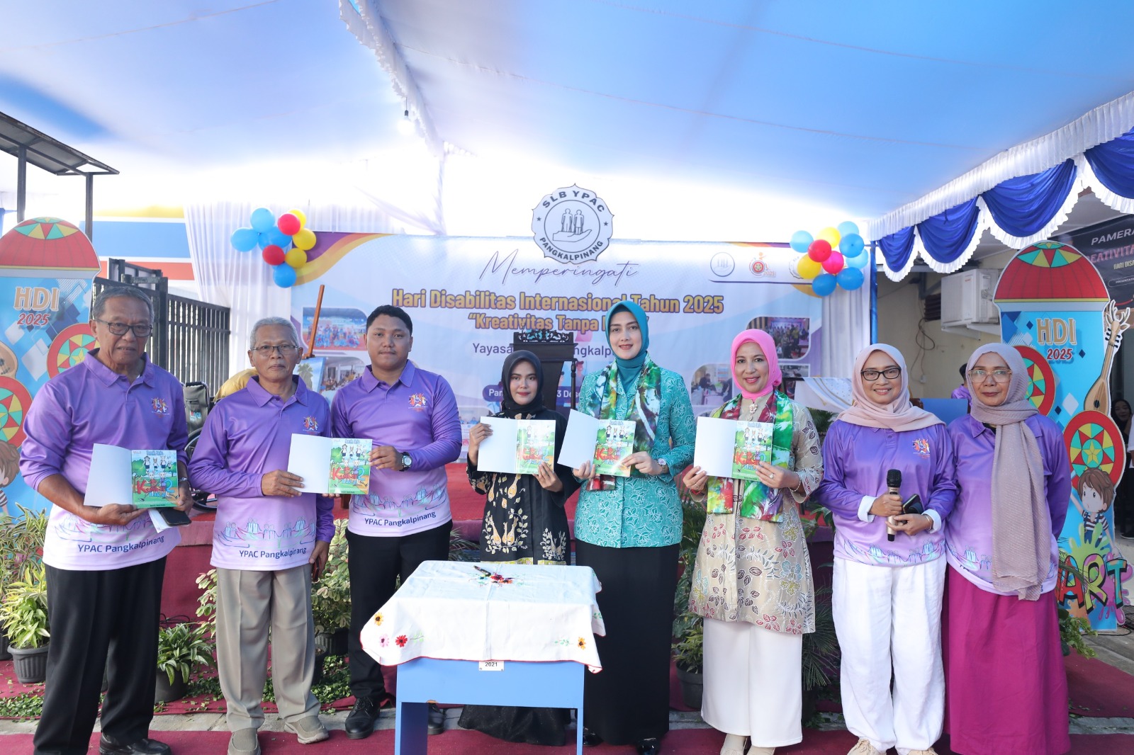 JENDELABABEL.COM, PANGKALPINANG — Ketua Tim Penggerak Pemberdayaan dan Kesejahteraan Keluarga (TP PKK) Provinsi Kepulauan Bangka Belitung (Babel), Noni Hidayat Arsani, menghadiri peringatan Hari Disabilitas Internasional (HDI) 2025 di Sekolah Luar Biasa Yayasan Pembinaan Anak Cacat (SLB YPAC) Pangkalpinang, Rabu (3/12/2025).