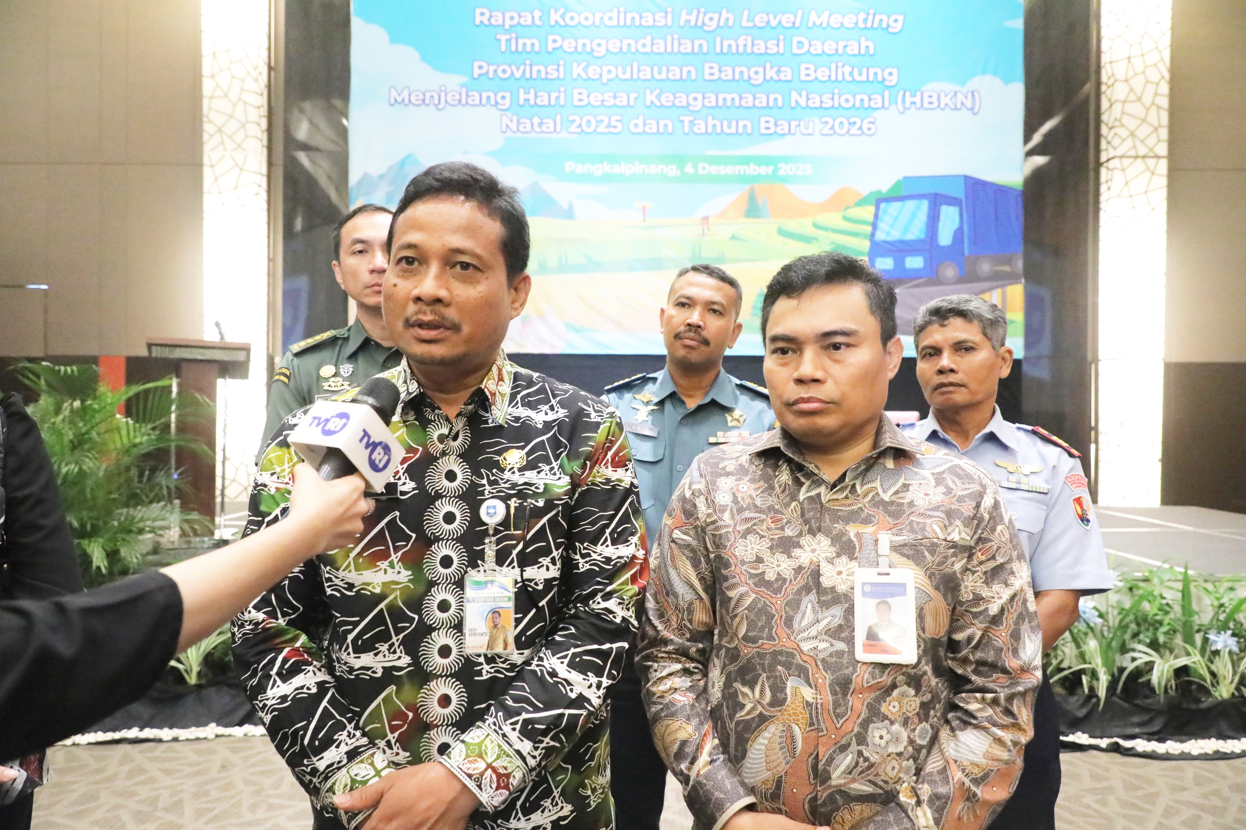 JENDELABABEL.COM, PANGKALAN BARU — Penjabat Sekretaris Daerah (Pj Sekda) Pemerintah Provinsi Kepulauan Bangka Belitung (Pemprov Babel) Fery Afriyanto membuka secara resmi Rapat Koordinasi _High Level Marketing_ Tim Pengendalian Inflasi Daerah (TPID) menjelang Hari Besar Keagamaan Nasional (HBKN) di Novotel Bangka Hotel and Convention Centre, Kamis (4/12/2025).
