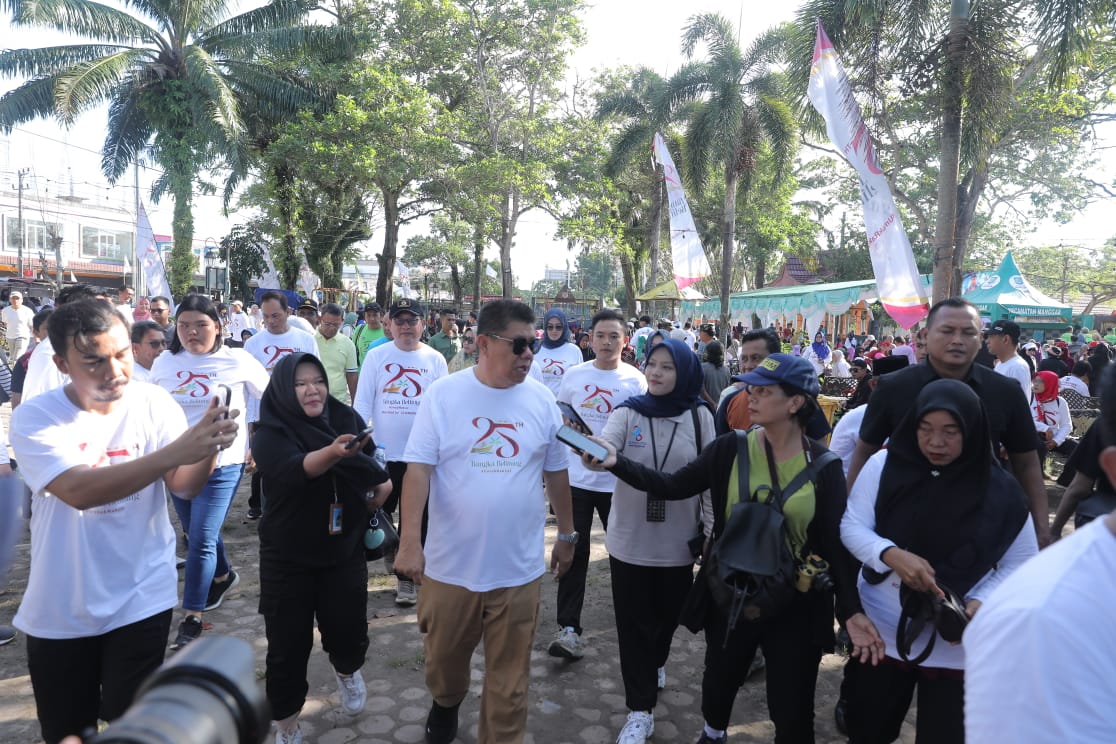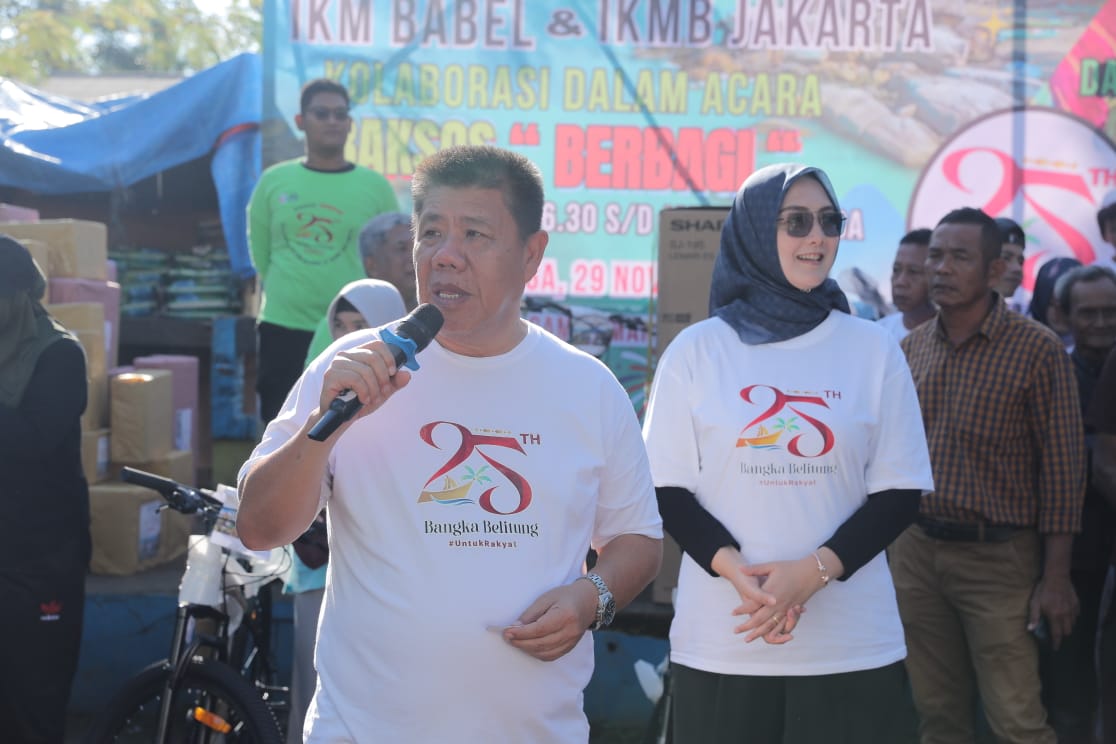 JENDELABABEL.COM, MANGGAR —Rangkaian HUT ke-25 Provinsi Kepulauan Bangka Belitung (Babel) masih terus berlanjut. Kali ini, Gubernur Babel Hidayat Arsani didampingi Ketua TP PKK Noni Hidayat dan jajaran, membagikan paket sembako ke Kecamatan Manggar Kabupaten Belitung Timur, dengan titik lokasi di Kantor Camat Manggar, Minggu (30/11/2025).