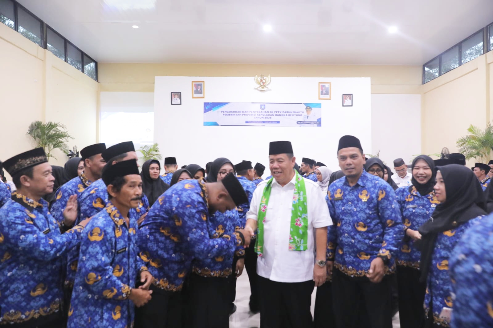 JENDELABABELCOM, BELITUNG – Gubernur Kepulauan Bangka Belitung (Babel) Hidayat Arsani ,Jumat (19/12/2025) secara resmi mengukuhkan dan menyerahkan Surat Keputusan (SK) kepada 285 Pegawai Pemerintah dengan Perjanjian Kerja (PPPK) Paruh Waktu di lingkungan Pemerintah Provinsi (Pemprov) Babel untuk wilayah kerja Kabupaten Belitung dan Kabupaten Belitung Timur. Kegiatan tersebut berlangsung di Gedung Serba Guna SMAN 2 Tanjungpandan, Kabupaten Belitung.