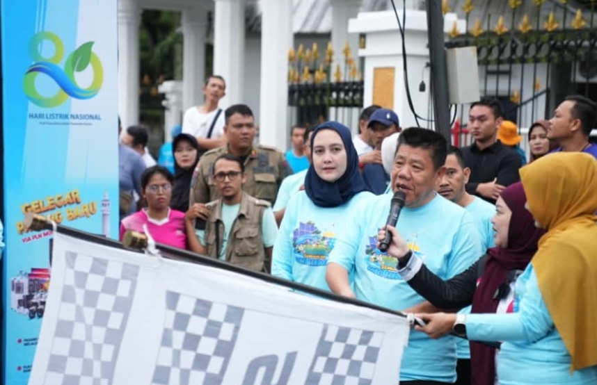 JENDELABABEL.COM, PANGKALPINANG -– Gubernur Kepulauan Bangka Belitung (Babel), Hidayat Arsani melepas secara langsung ribuan peserta jalan sehat Hari Listrik Nasional (HLN) ke-80 tahun 2025, yang diselenggarakan oleh PT PLN (Persero) Wilayah Babel. Sabtu (25/10/2025),
