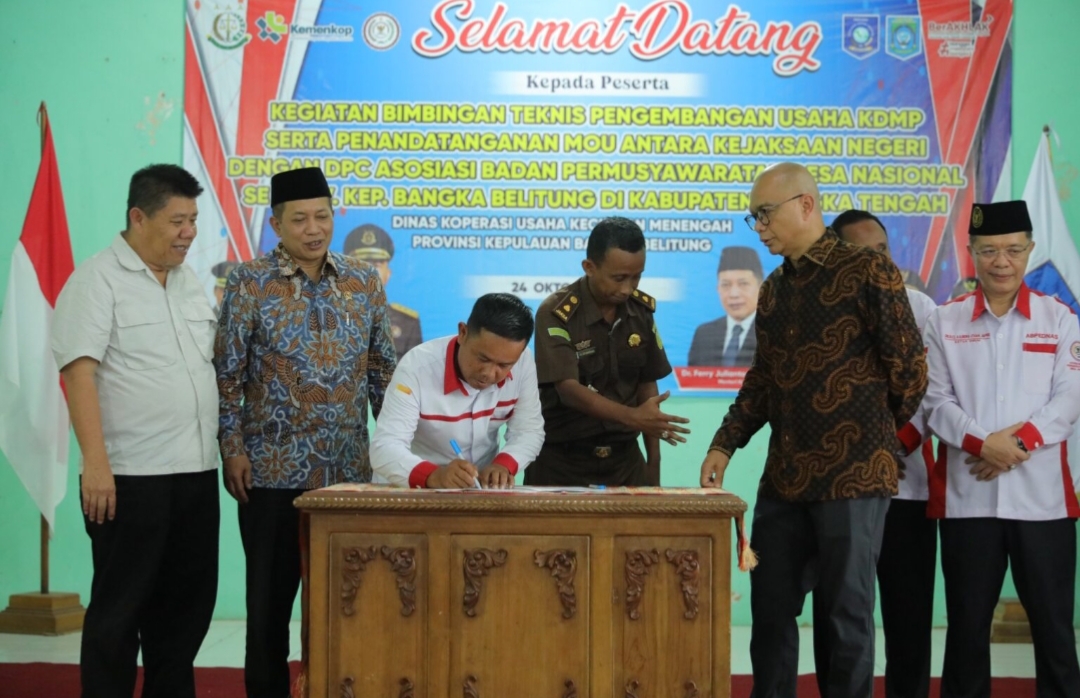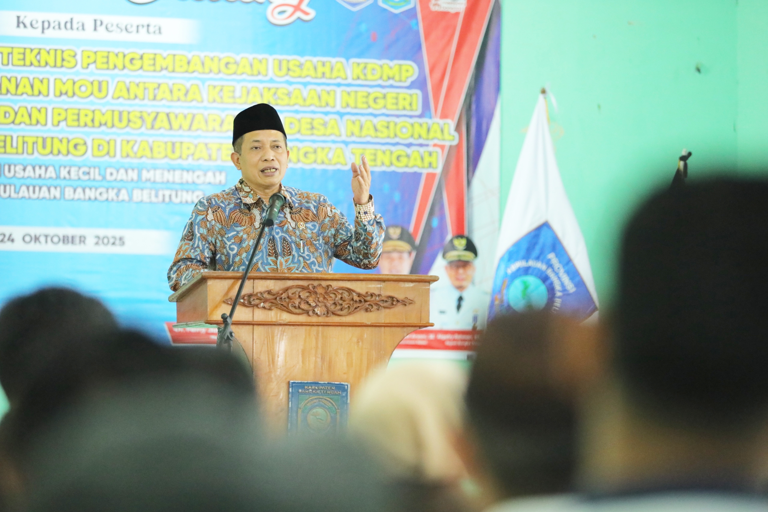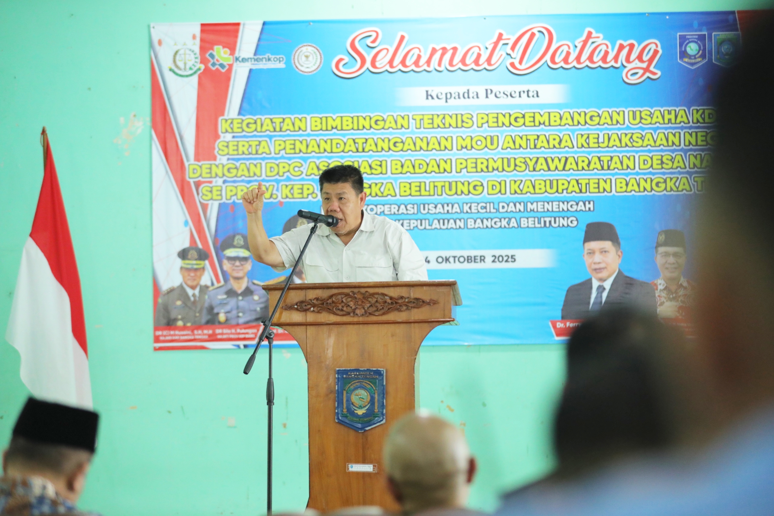 JENDELABABEL.COM, NAMANG  BANGKA TENGAH — Menteri Koperasi Republik  Indonesia (RI) Ferry Joko Juliantono dan Jaksa Agung Muda Intelijen Kejaksaan Agung RI, Reda Manthovani di dampingi Gubernur Kepulauan Bangka Belitung, Hidayat Arsani beserta Forkopimda menutup kegiatan Bimbingan Teknis (Bimtek) Koperasi Desa Merah Putih (KMP) Provinsi Babel Tahun 2025 bertempat di Balai Desa Namang, Jumat ( 24/10/2025 ).