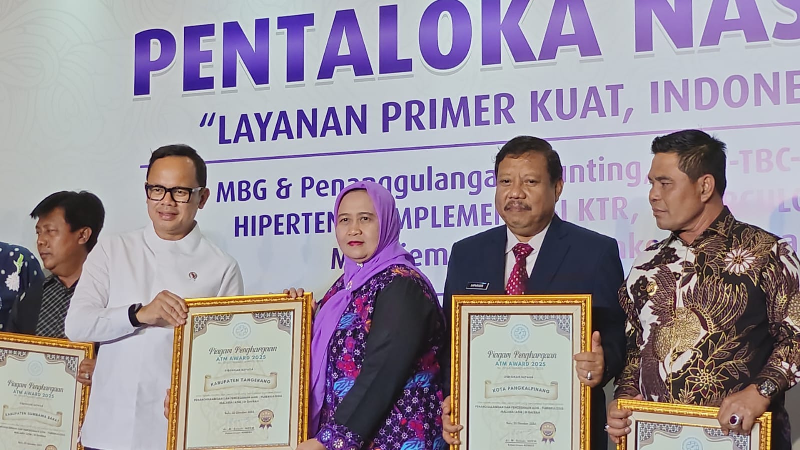 Wali Kota Pangkalpinang Prof Saparudin, menerima secara langsung penghargaan yang diinisiasi Asosiasi Dinas Kesehatan Dinas Kesehatan Seluruh Indonesia (Adinkes), di Lorin Hotel, Solo, Jawa Tengah, Selasa (21/10/2025) malam.