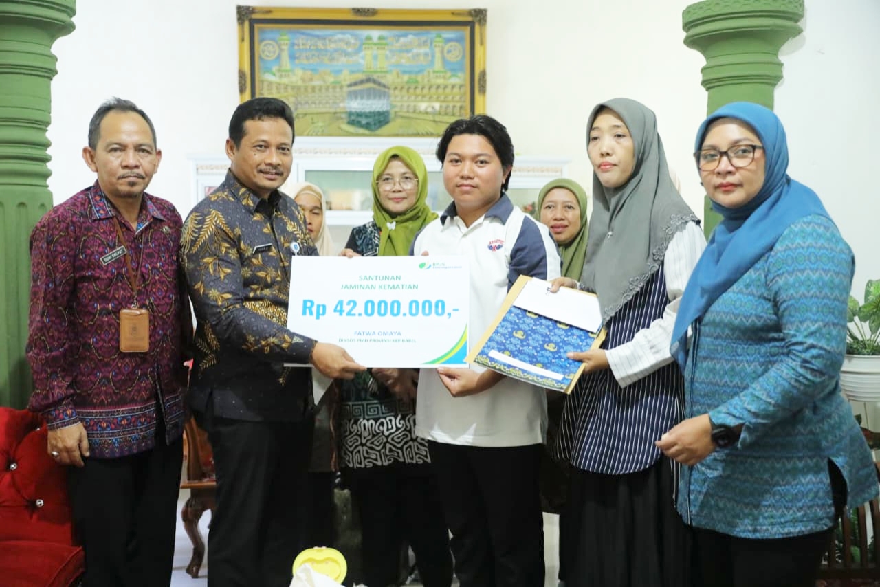 Dalam kunjungan pada Kamis siang tersebut, Pj Sekda Fery menyerahkan uang santunan dari ASN Peduli Babel, KORPRI, dan BPJS Tenaker kepada ahli waris alm Fatwa senilai Rp50.900.000, dengan rincian ASN Peduli Rp.3.900.000; KORPRI Rp5.000.000, dan BPJS Tenaker Rp.42.000.000.