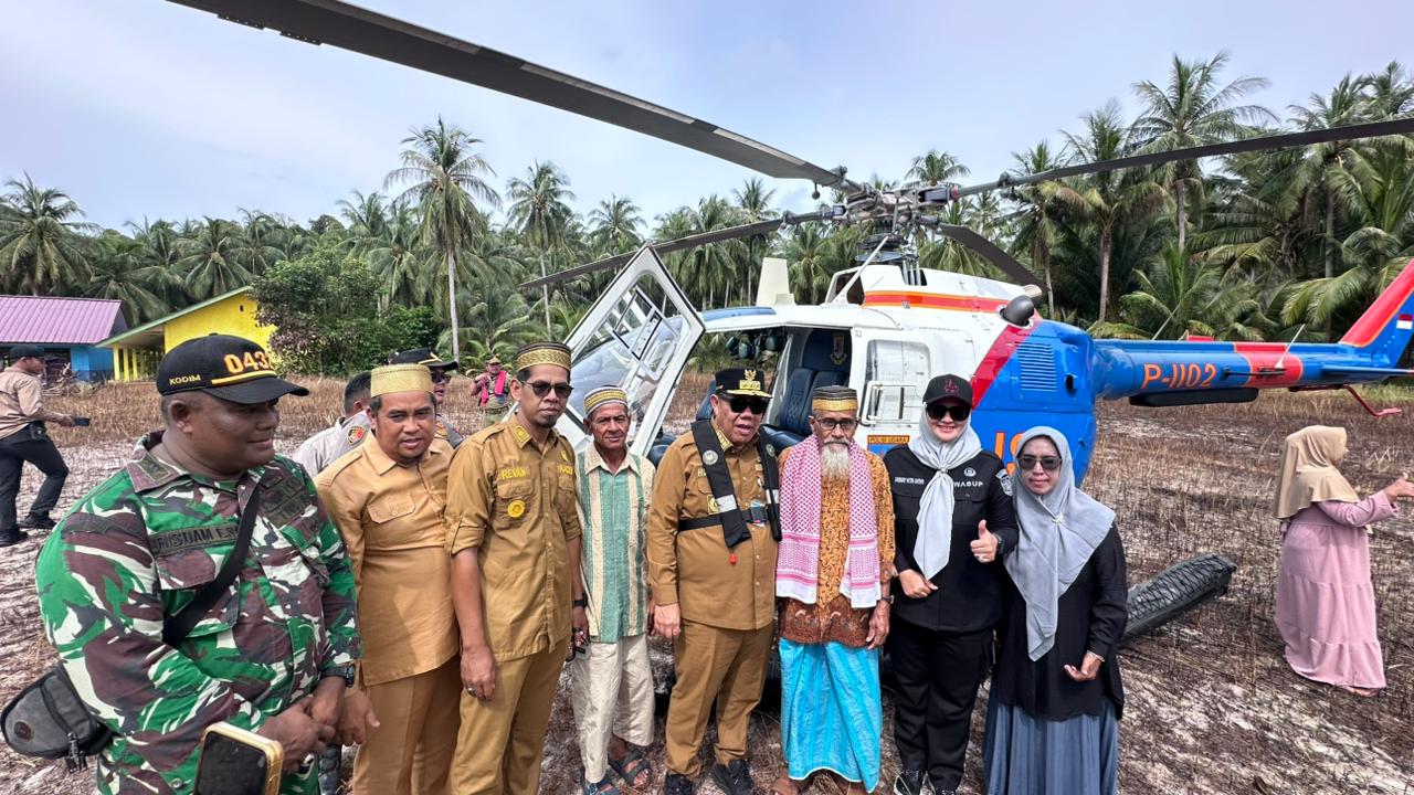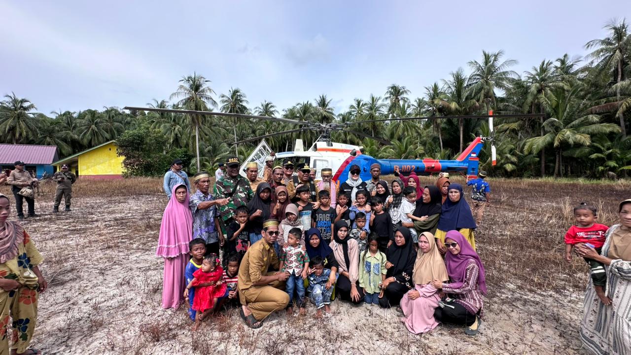 Di sela-sela kunjungan, nampak Gubernur Hidayat menyempatkan diri bercengkerama singkat dan berfoto bersama warga Pulau Kelapan. (Redaksi)