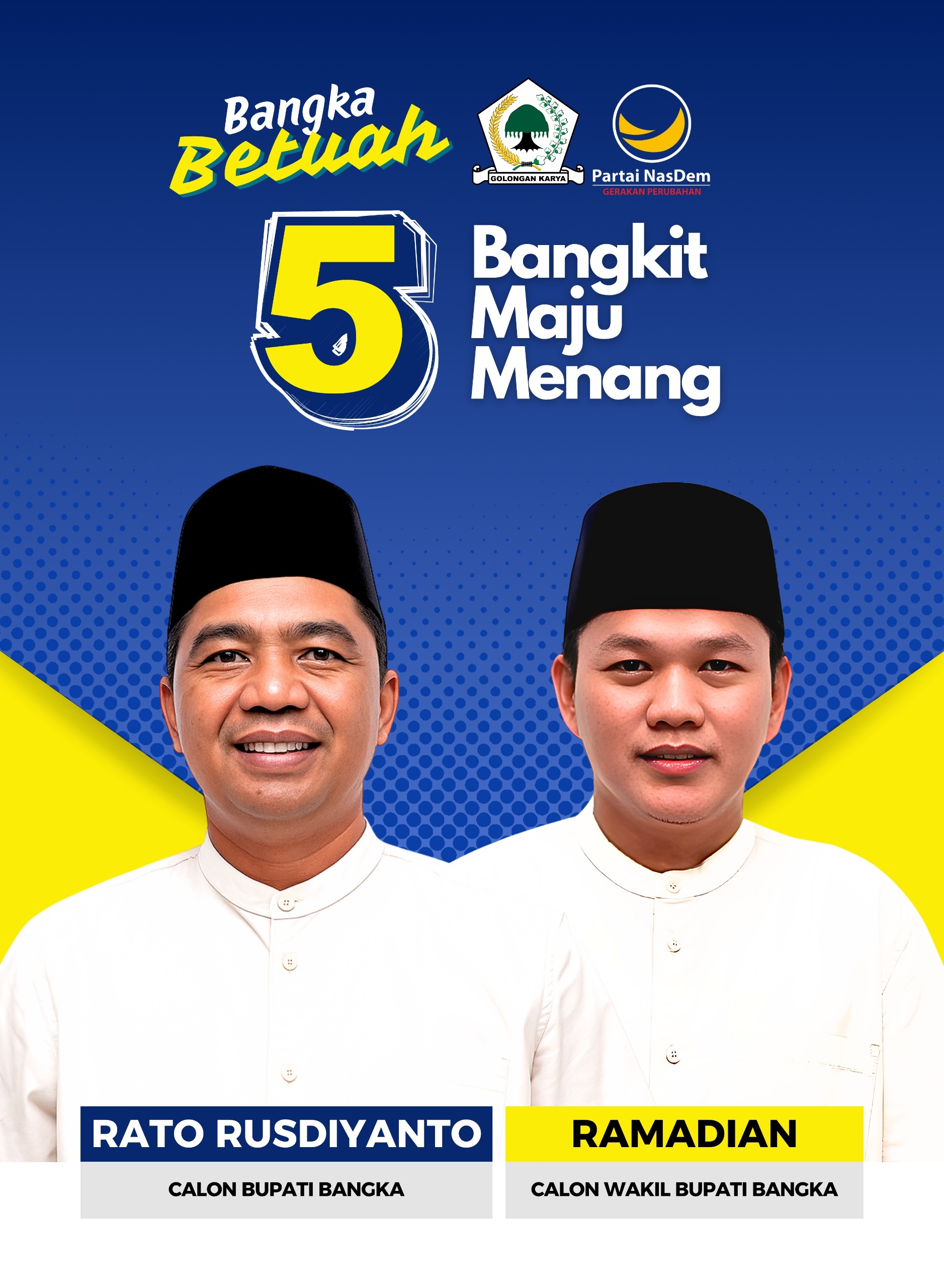 Pasangan Rato–Ramadian dinyatakan memenuhi syarat secara administrasi dan berhak lanjut ke tahap berikutnya,” kata Ketua Bappilu DPD NasDem Bangka, Sarji, dalam keterangan tertulis, Jumat (18/7/2025).