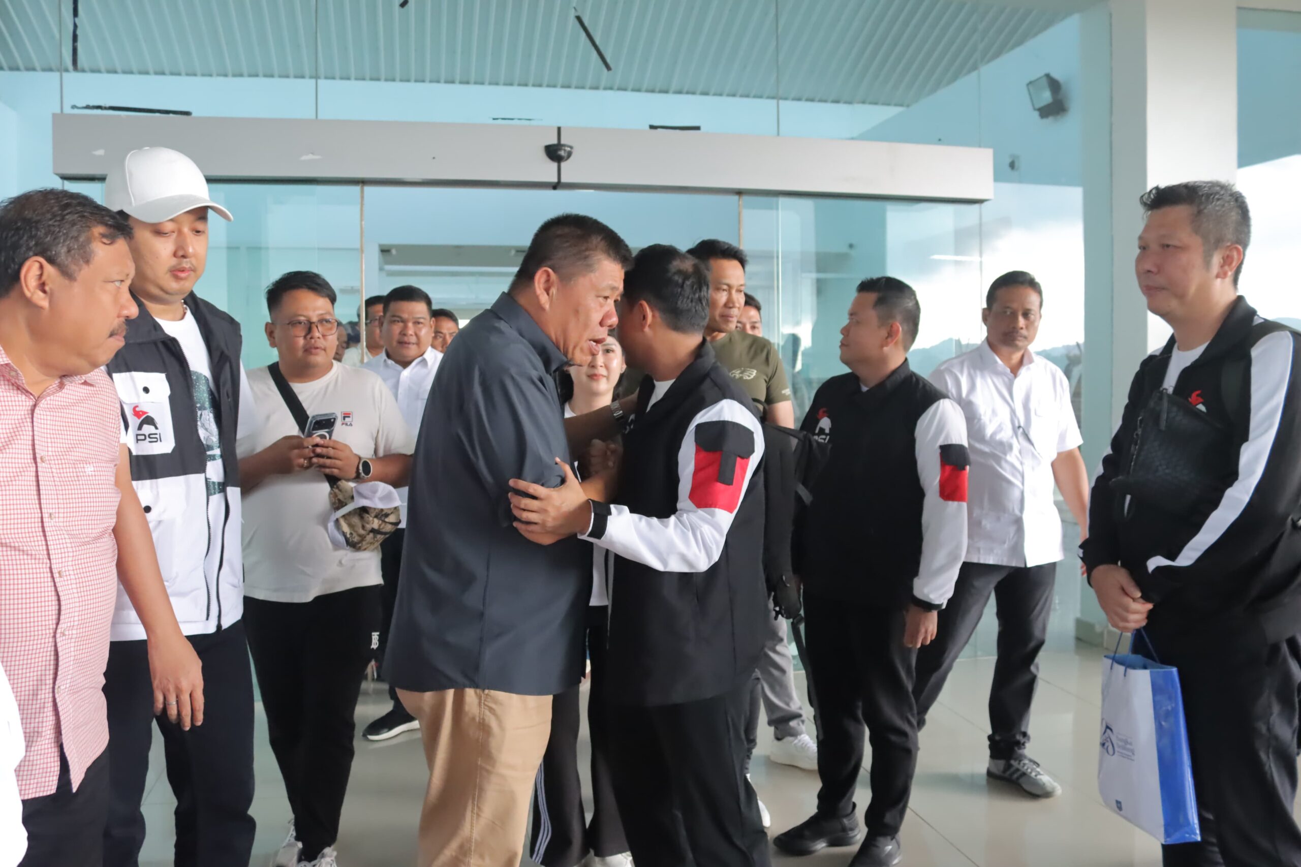 JENDELABABEL.COM, PANGKALPINANG — Gubernur Kepulauan Bangka Belitung (Kep. Babel) Hidayat Arsani, mengantar kepulangan Menteri Kehutanan Republik Indonesia (Menhut RI) Raja Juli Antoni beserta rombongan, usai melaksanakan kunjungan kerja ke Bangka Belitung, di Terminal VIP Bandara Depati Amir Pangkalpinang, Minggu, (23/11/2025).
