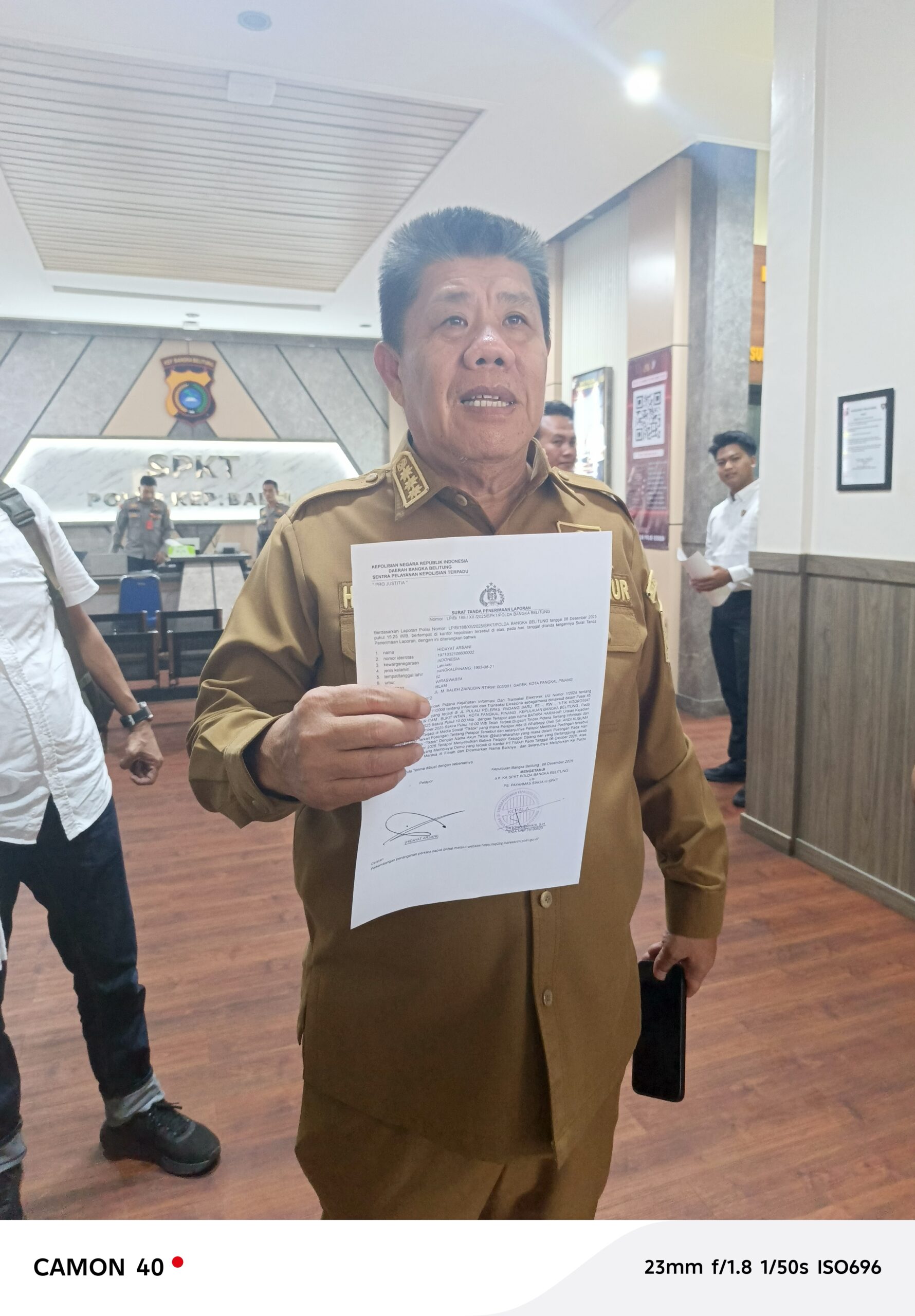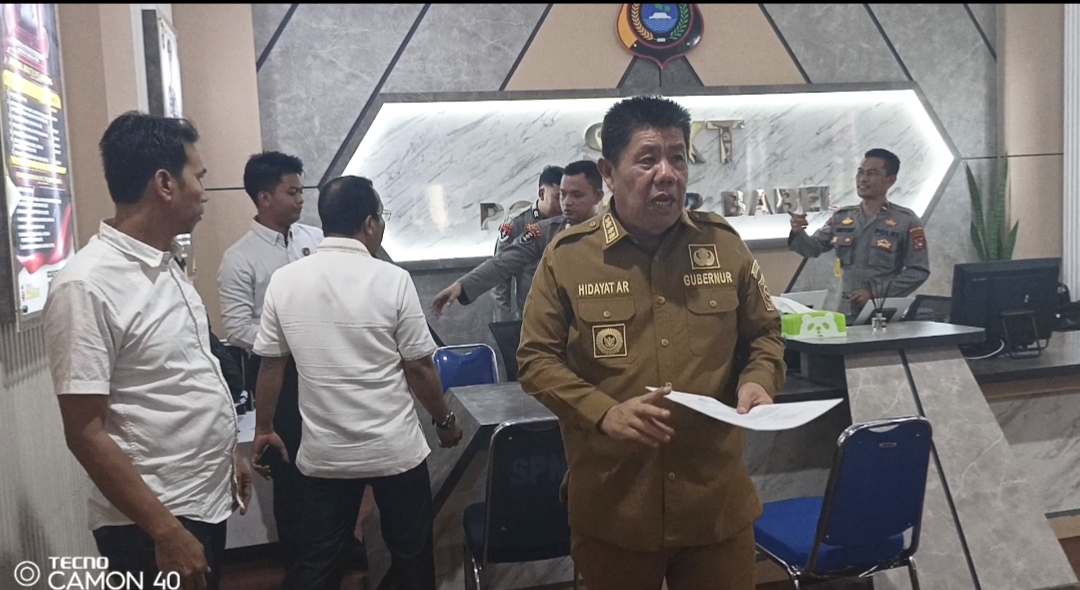 Hidayat Arsani mendatangi SPKT Polda Babel, sekitar pukul 14.05 WIB, guna melaporkan secara resmi secara pribadi dugaan fitnah tersebut.